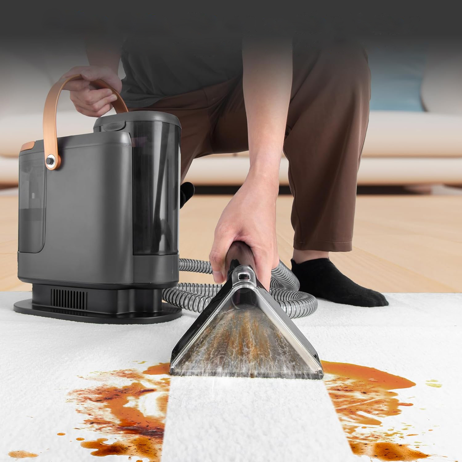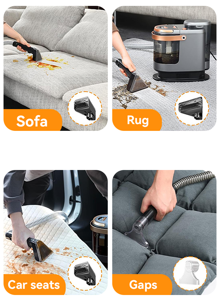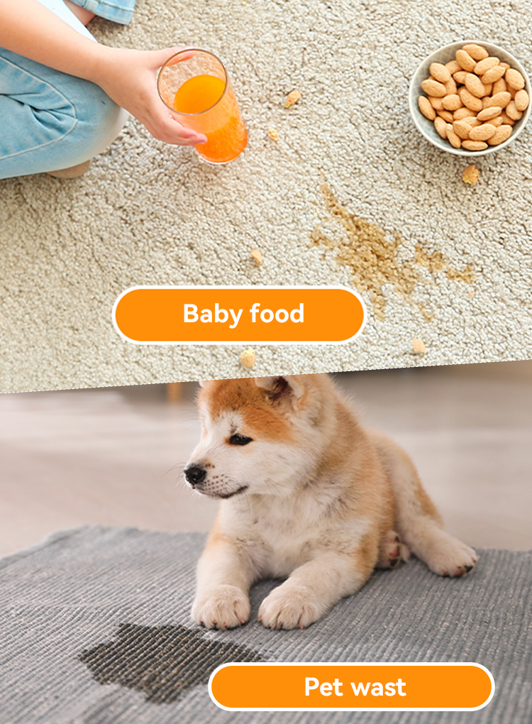 From kids' stained mattresses and dirty strollers to pet-urine-soaked carpets, heavy sofas, and car seats—everything can be cleaned effortlessly without disassembly. The high-pressure spray system and powerful suction speed up the cleaning process, reduce user fatigue, and deliver faster, more convenient cleaning.