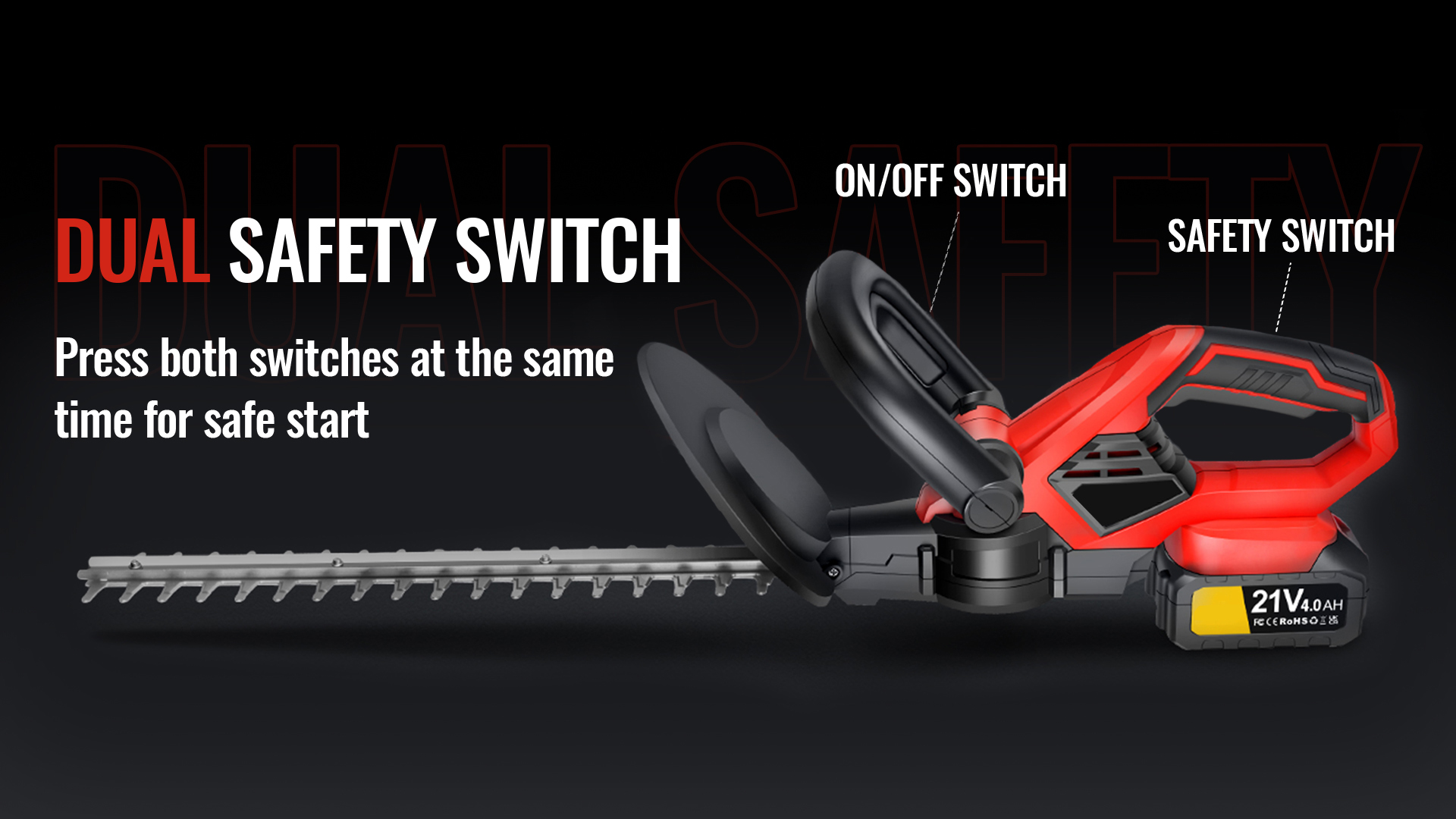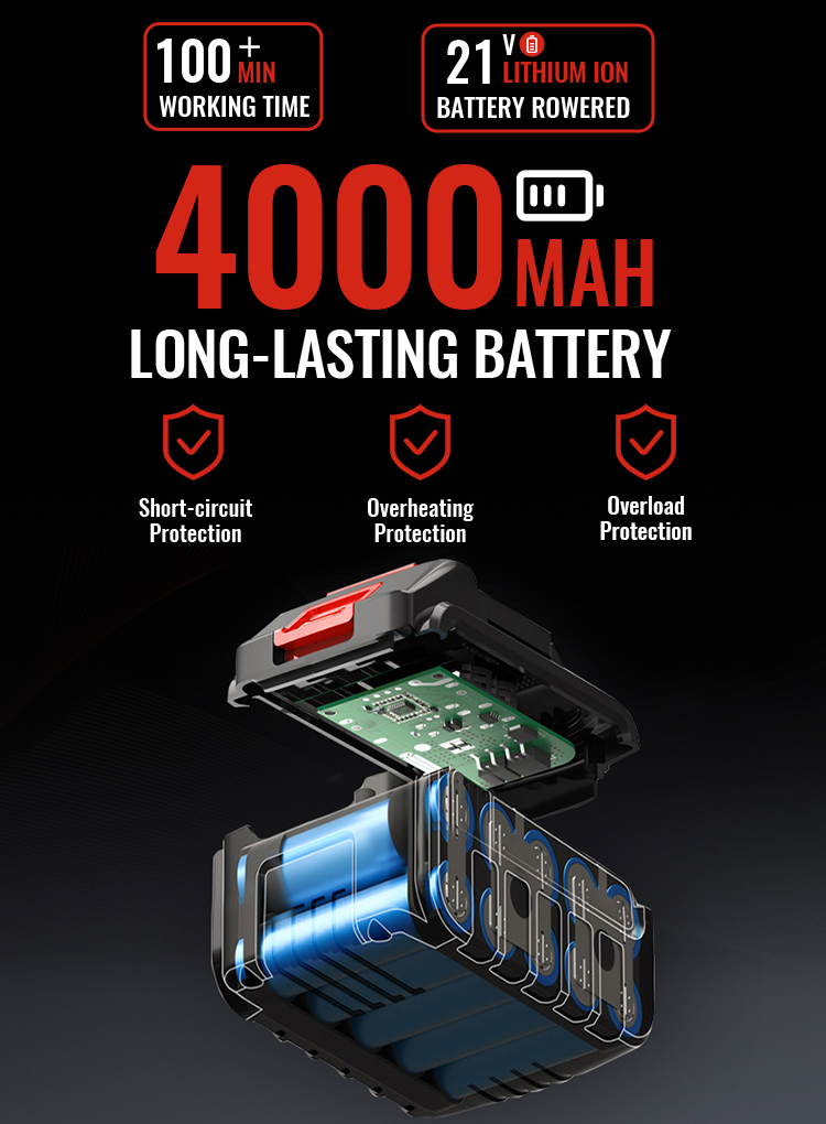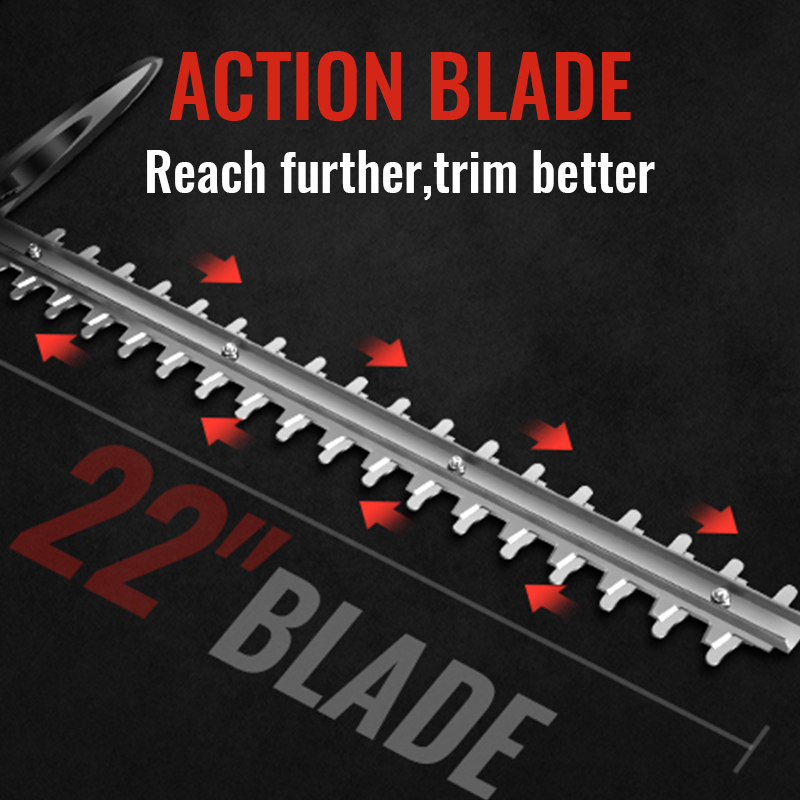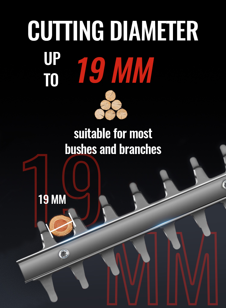 Equipped with a powerful 850w copper motor with no-load speeds up to 2000 rpm, our battery hedge trimmers can deliver optimal and efficient results under almost all working conditions. Your efficiency for the same hedge work will improve by 30.33%.