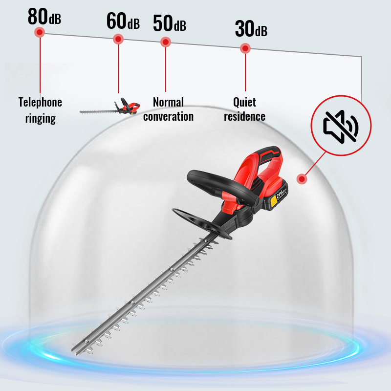 This hedge trimmer only has 60 dB of characteristics, indicating that it is very quiet. This means that the noise level produced during use is relatively low, making it suitable for use in environments where noise is a concern, such as residential areas or quiet environments, and it helps to reduce noise interference with the surrounding environment and people.