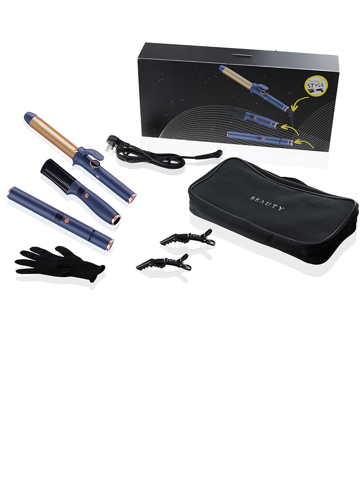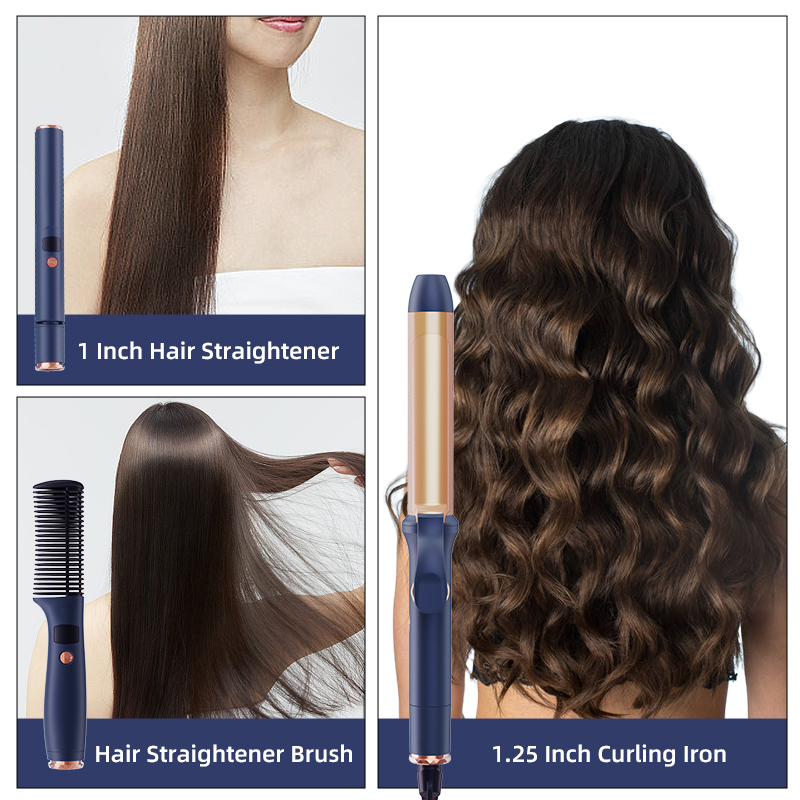 This 3 in 1 hair styling set includes a 25-mm hair straightener, a 32-mm curling iron and a hair straightener brush. With the detachable power cord, a single power cord can control three devices, which saves a lot of space. With this set of styling tools, you can achieve various hair designs.
